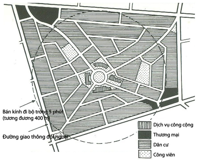 Hình 1. Mô hình “Đơn vị ở” của Nhà quy hoạch Clarence Perry