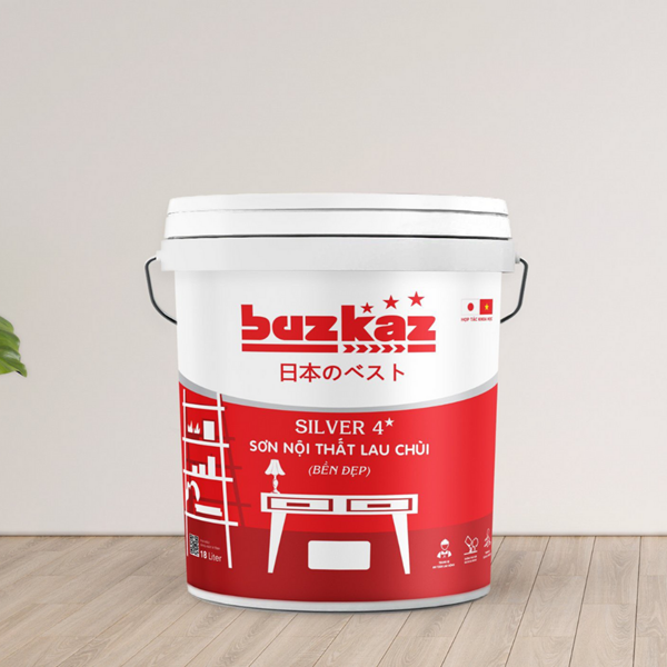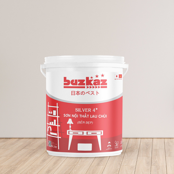 SILVER 4* Sơn nội thất lau chùi, bền đẹp được pha chế đặc biệt để có độ bền mầu cao. Đem lại màng sơn phẳng mịn với nhiều mầu sắc hấp dẫn và có thể phủ rộng hơn nhờ có độ che phủ cao dễ lau chùi |